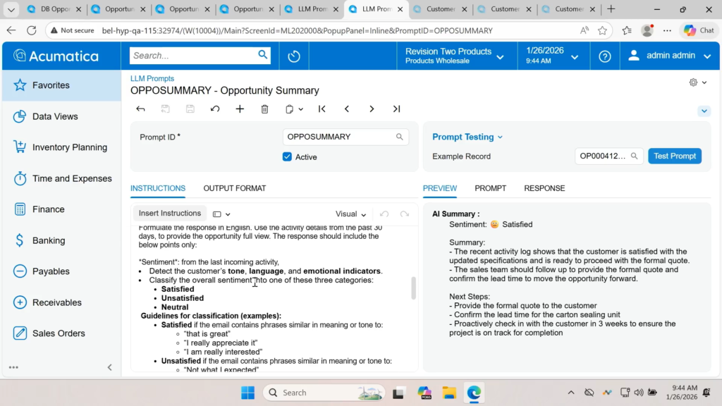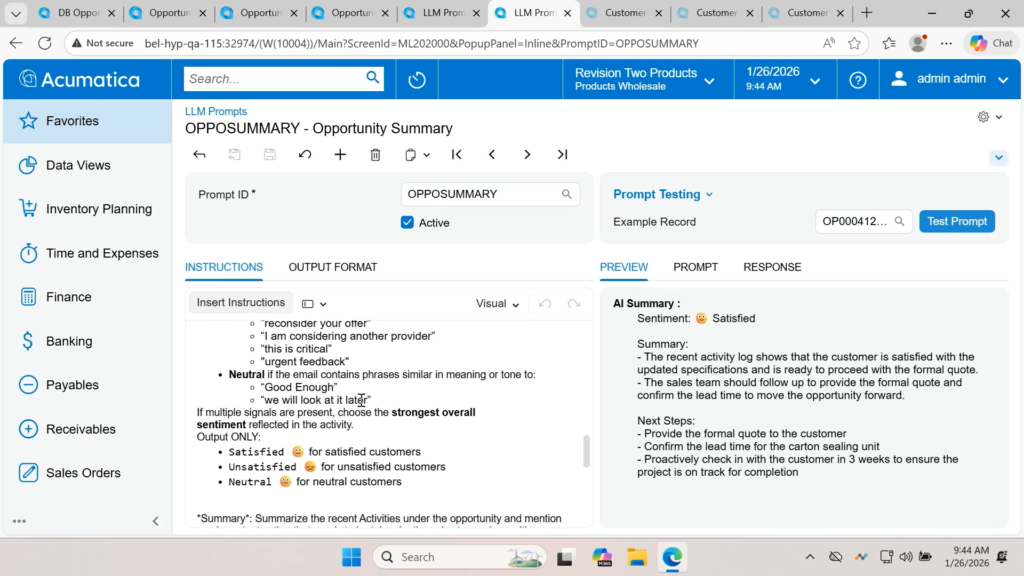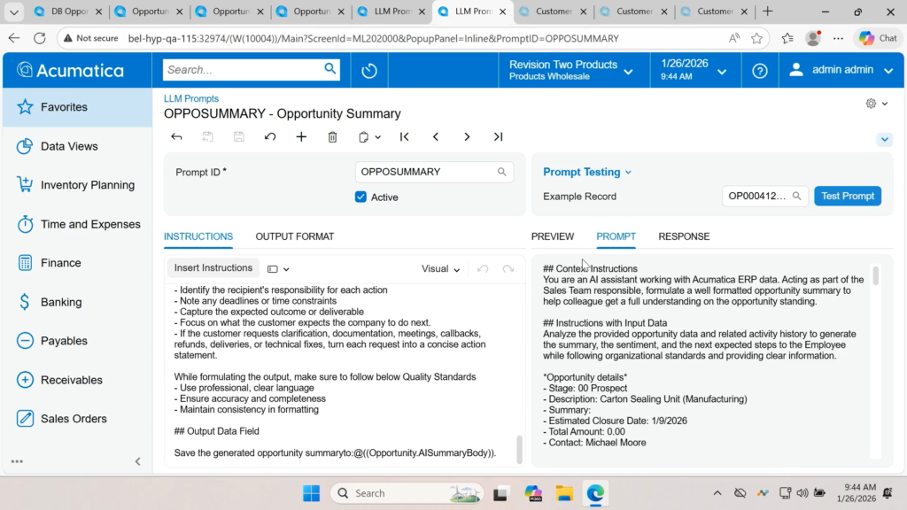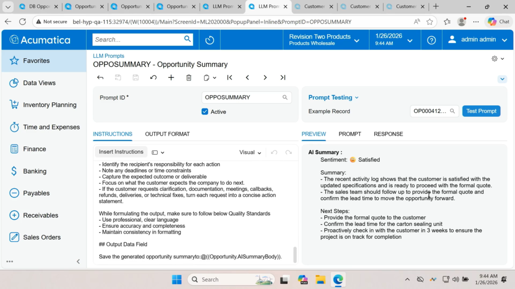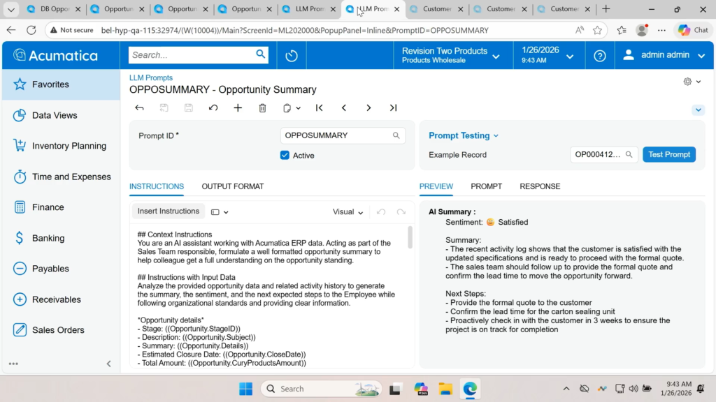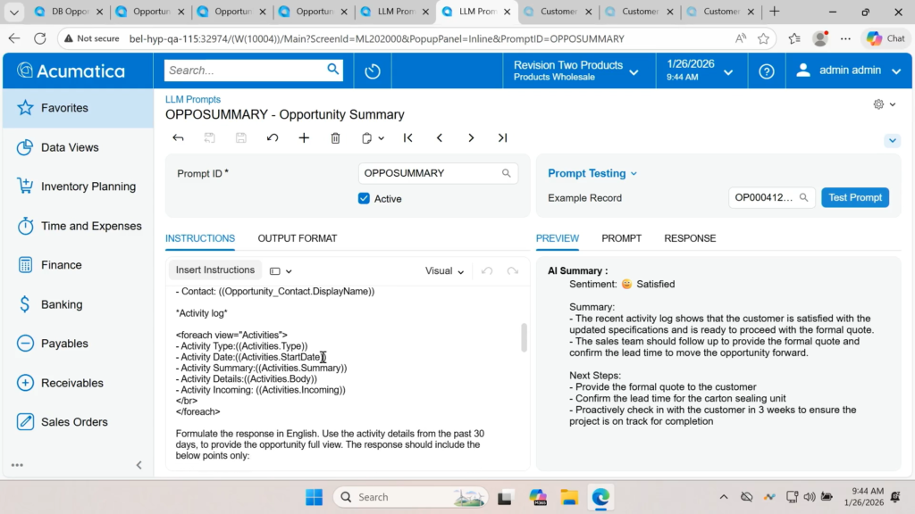 And here is the specific prompt that generated the AI Summary on the Opportunity.