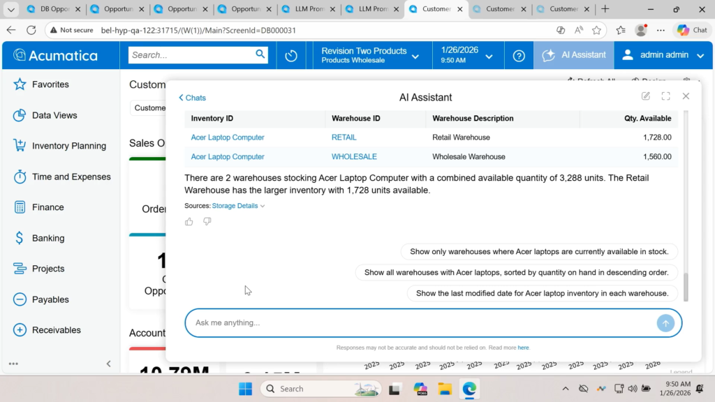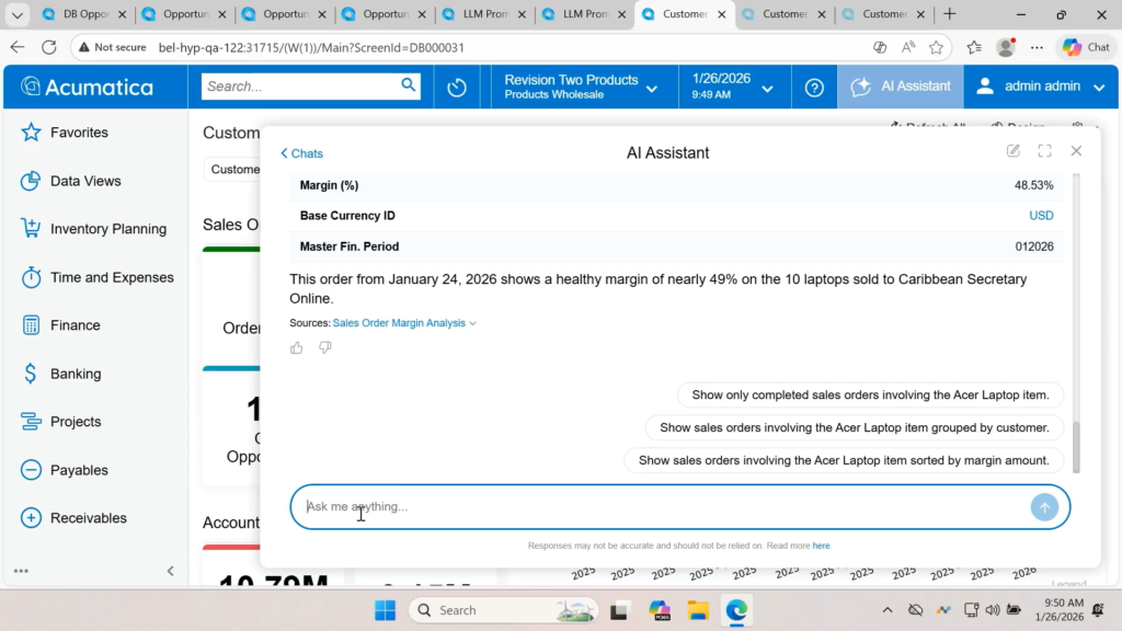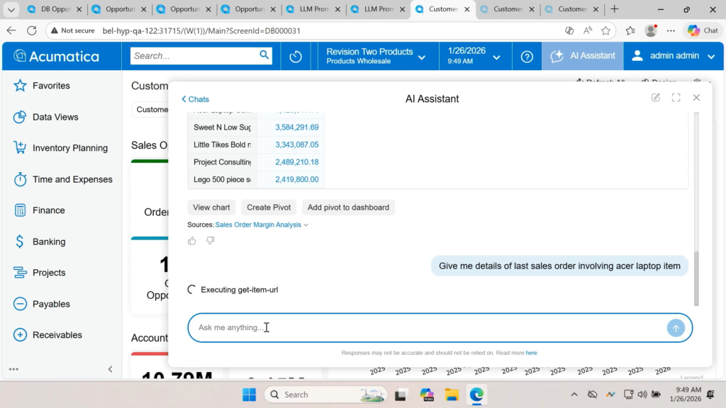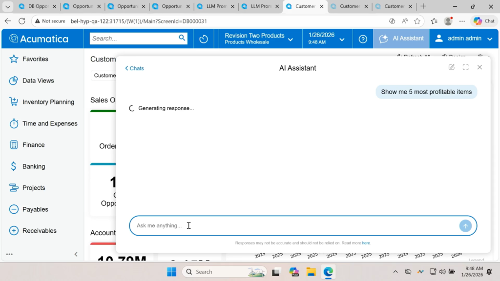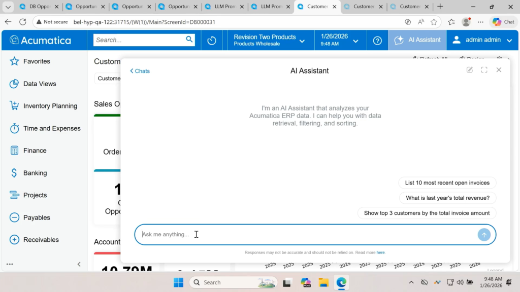 Now let’s talk about AI Assistant which we can use out-of-the-box in Acumatica 2026 R1.