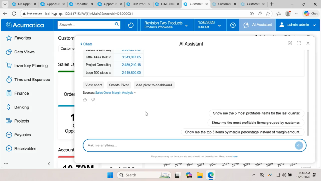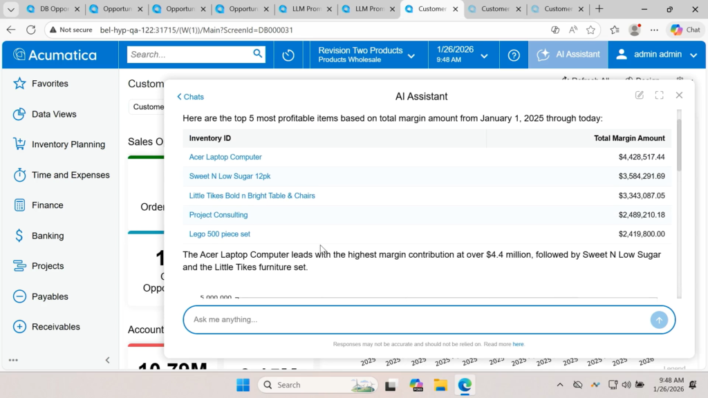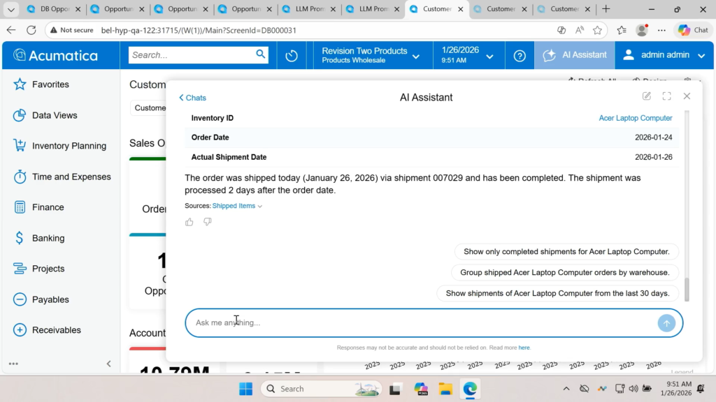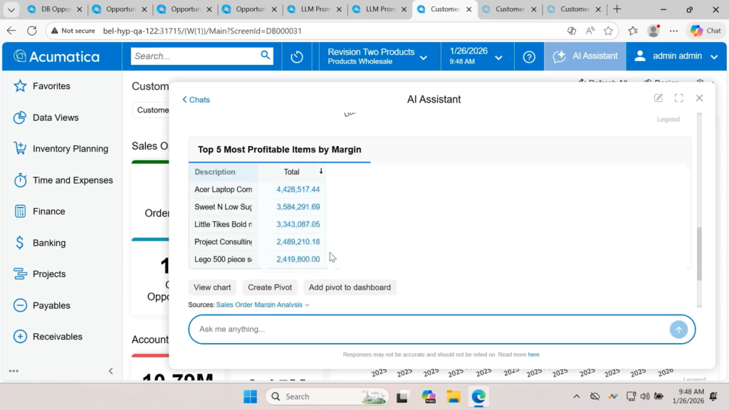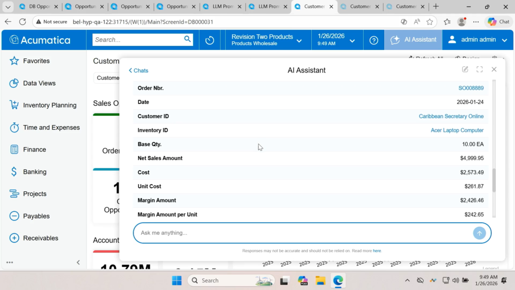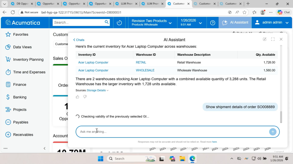 Now let’s talk about AI Assistant which we can use out-of-the-box in Acumatica 2026 R1.