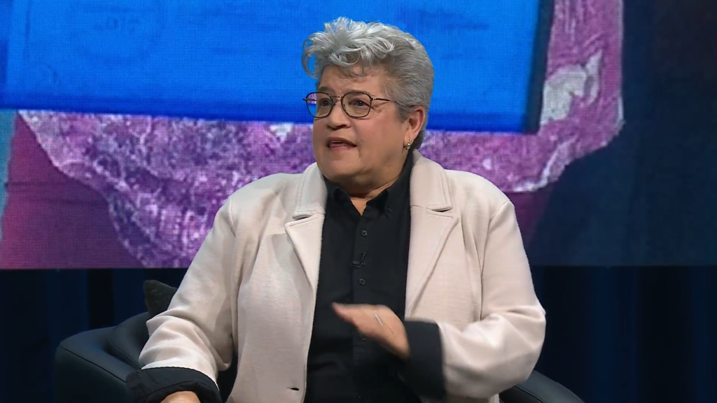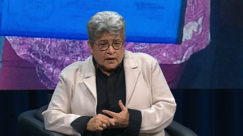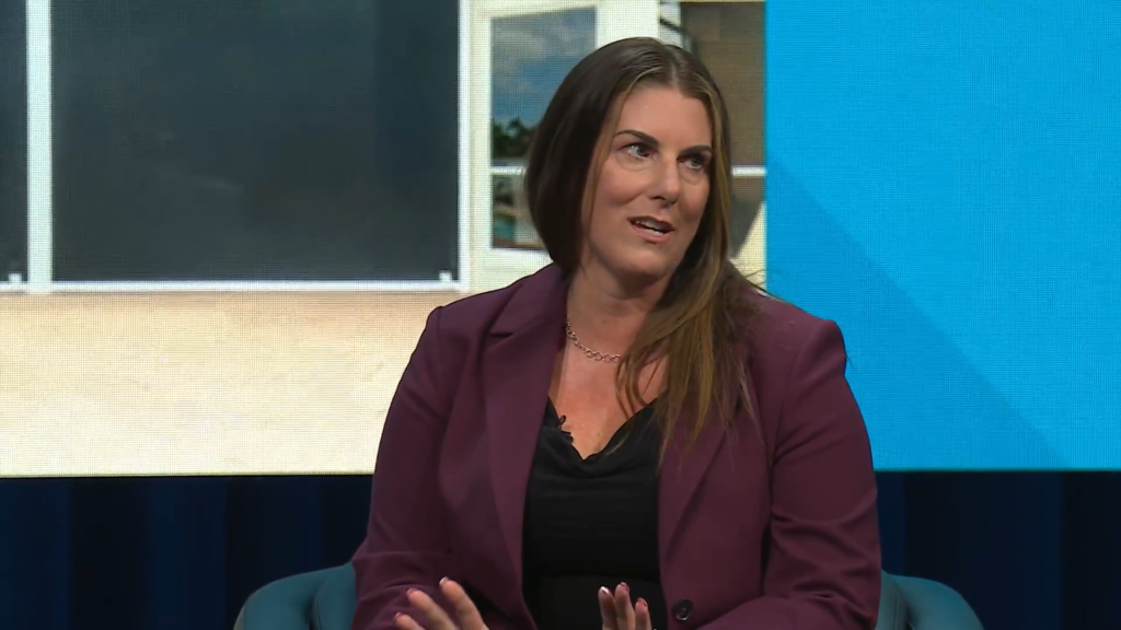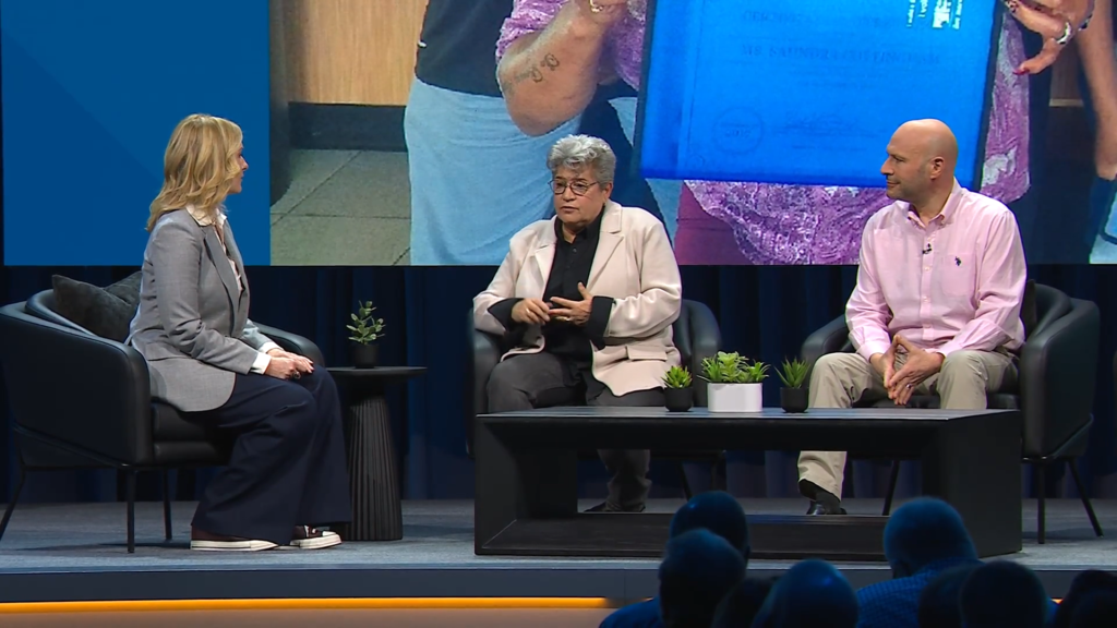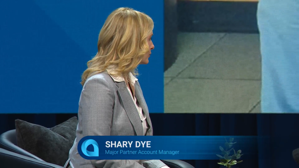 Shary Dye from Acumatica on stage to moderate the discussion.