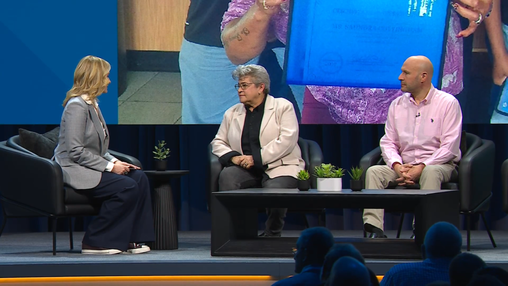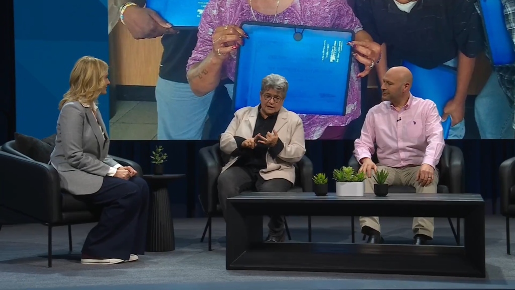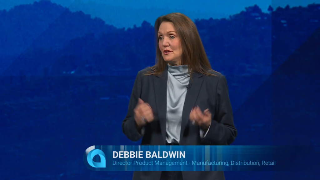 Now Debbie Baldwin on stage to show what this end-to-end experience looks like for a Manufacturing company.