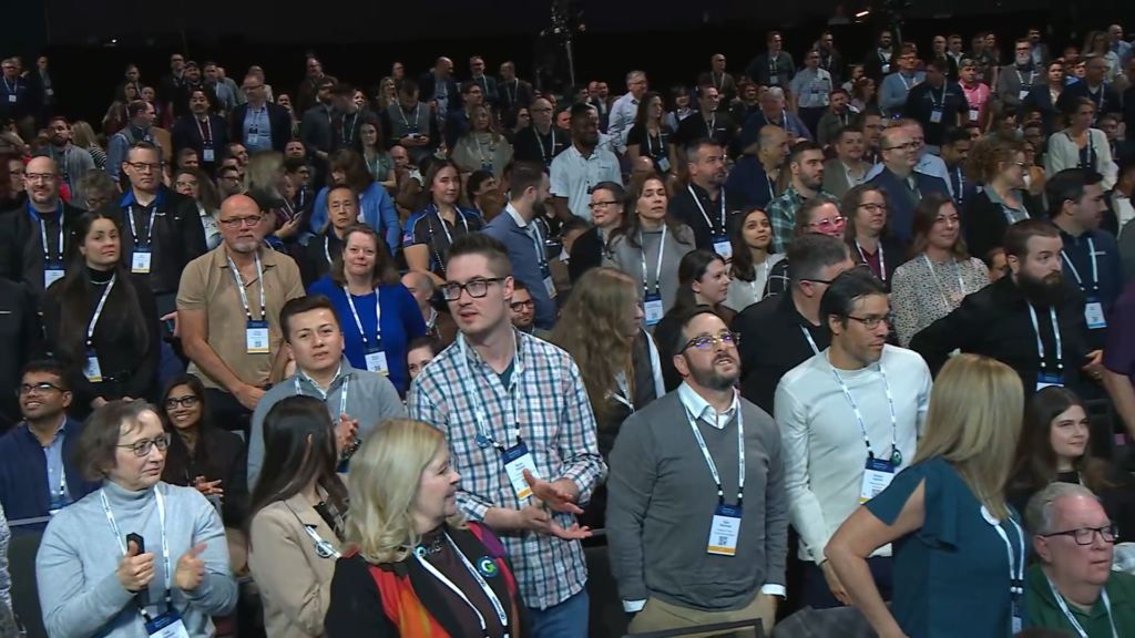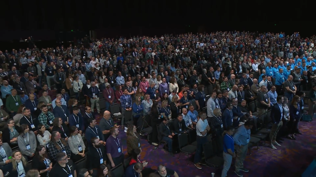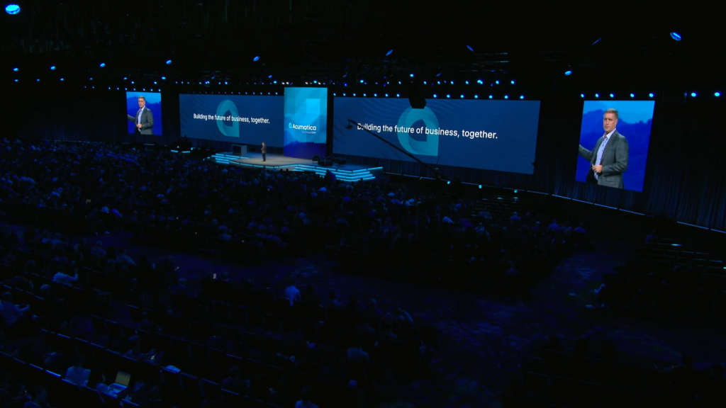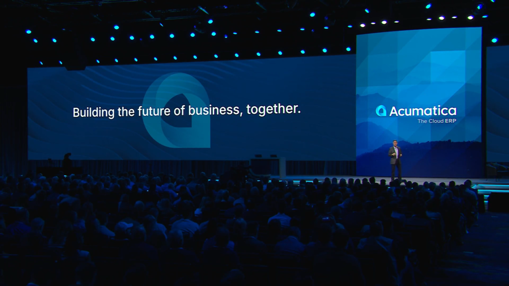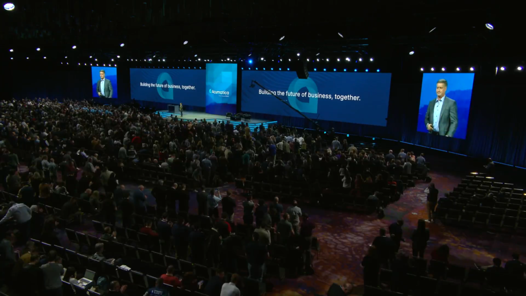 If you work for an Acumatica Customer, please stand up. Seems like he’s trying to get the whole room to stand up ๐