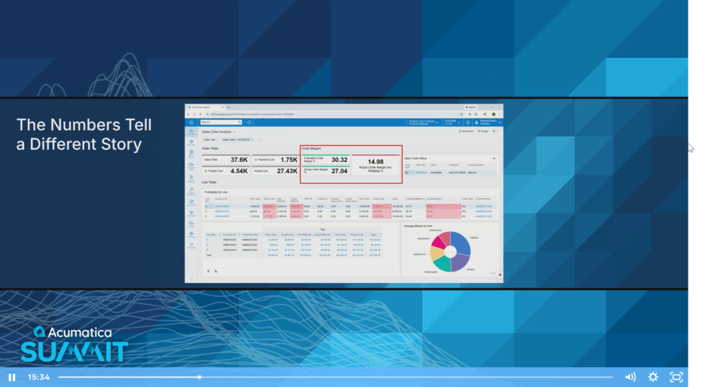 The margin numbers that are shown on the Acumatica dashboard are lower than expected.