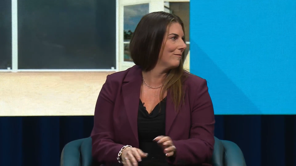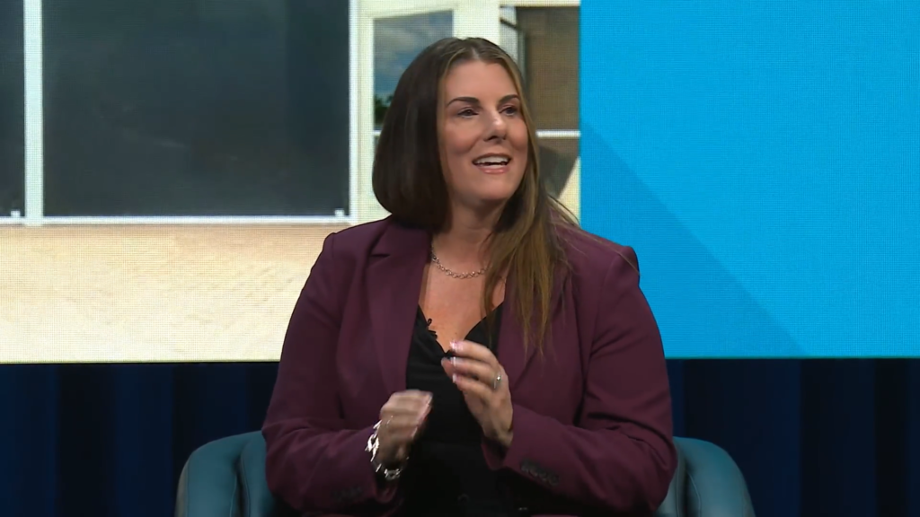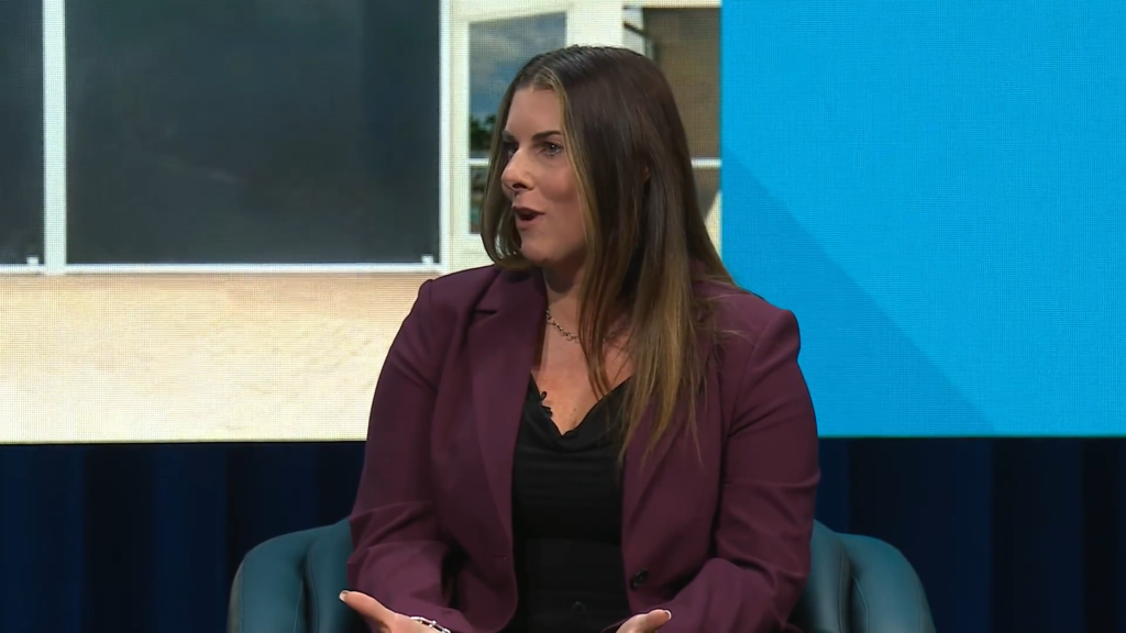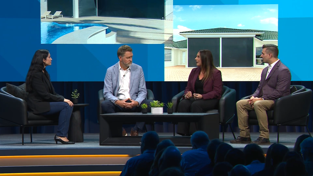 Sarah Spangler from Acumatica joins the panel on stage to moderate the discussion.