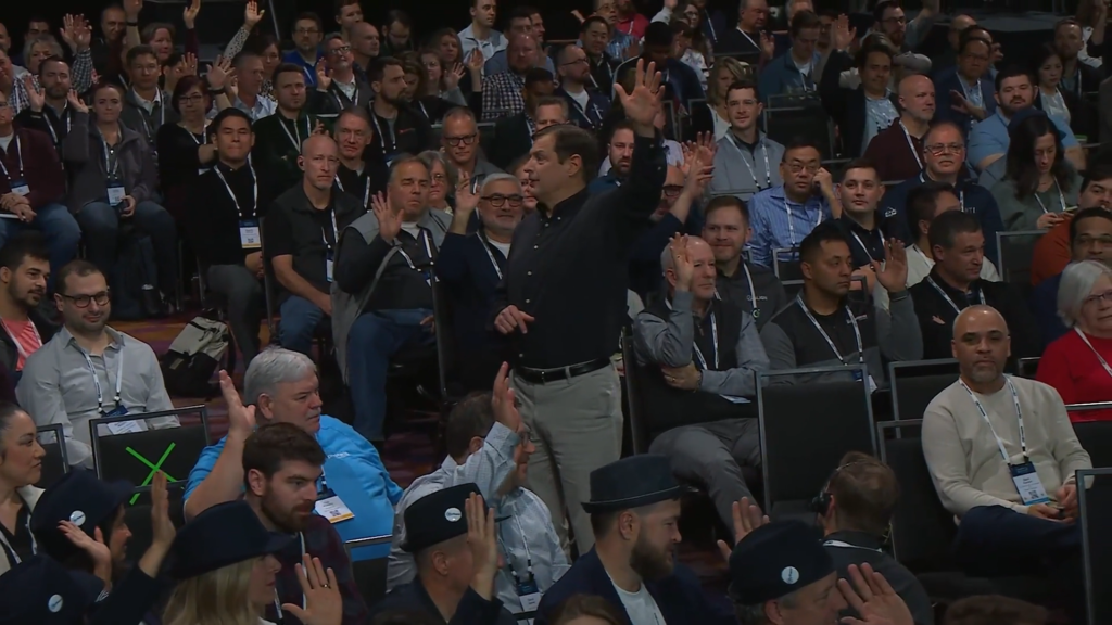 Now Jon comes back on stage and gives a round of applause to the Product and Tech teams.