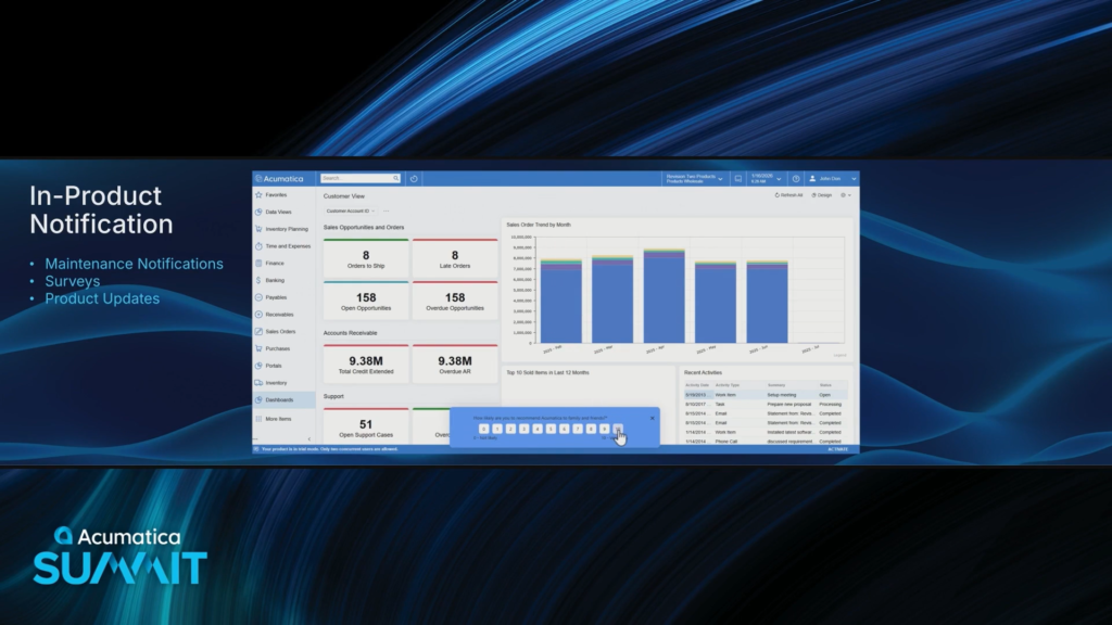 Also in-product messaging for direct messaging with Acumatica. For interacting with the Product Team and I think even for the Support Team?