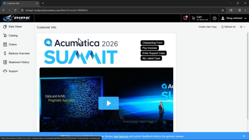 All of those same technology pieces can be used to interact with your own customers through your own Acumatica Customer Portal. Sweet, that’s what I was hoping.