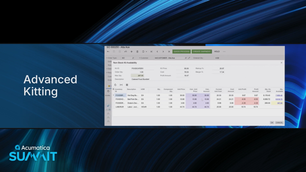 Advanced Kitting on Sales Orders gives you visibility and control over components during Sales Order entry.