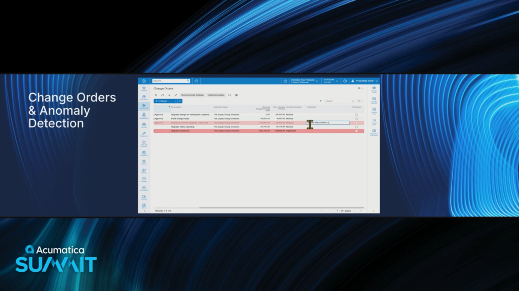 This shows us the Change Orders and a couple of them have been highlighted in red because they were highlighted by Anomaly Detection.
