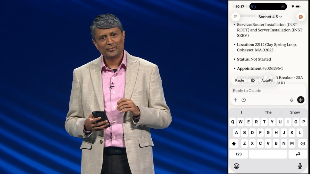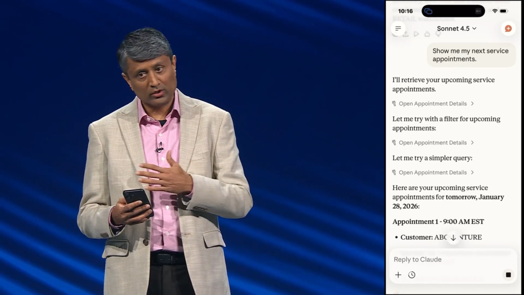 Now Mitten used voice dictation to say, “show me my next service appointments”.
