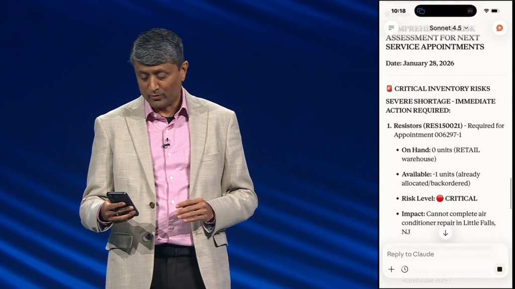 Now Mitten is asking Claude, “review my next service appointment and assess risks based on stock availability and weather conditions”.