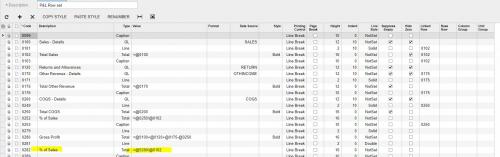 I have a 12 month P&L. I have several rows in my row set that are % of Sales. When I do my calculation to add the 12 month total it is displaying a sum of those % instead of a percent. So 6.65% instead of 55%. Any thoughts on how to correct this?