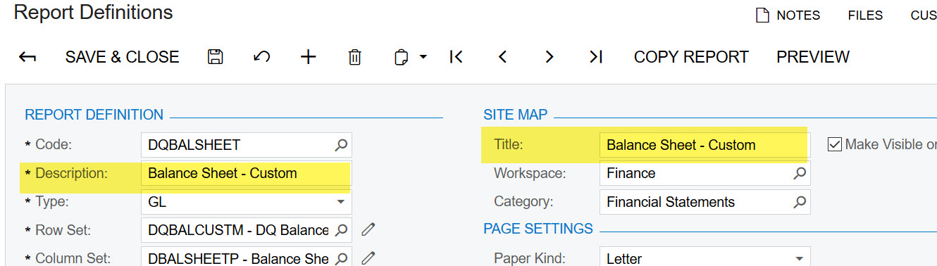 Just looking for some UI advice. I keep having the experience of creating an ARM report, seeing the report Title/Description showing nicely in the Finance>Financial Statements area, and then after tweaking the row sets a few times, it's like I have this dissociative experience where the UI switches from showing the Report Definition (eg Balance Sheet - Custom) to the report code eg (DQBALSHEET) in Finance>Financial Statements.