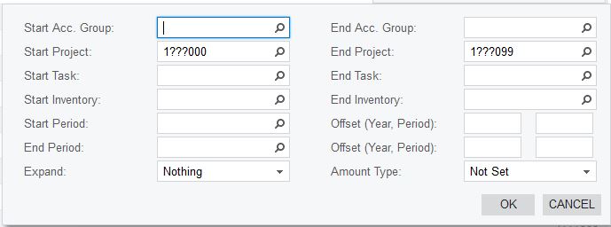 Anyone have any thoughts? The wildcards aren't working on the Project ID field like they do on Subaccounts in a GL report.