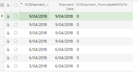 =DateDiff('d',[SOShipment.ShipDate],CDat([SOShipment.CreatedDateTime]))