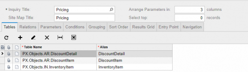 I need help with making a Generic Inquiry for discounts. I've already started on this. Getting the actual price resulted from the discount seems like it would be way out of my realm. So I just would like the percents and break points to be listed. My only issue so far, is that all of the percents are zero. Do i have the wrong relations, tables, or joins?