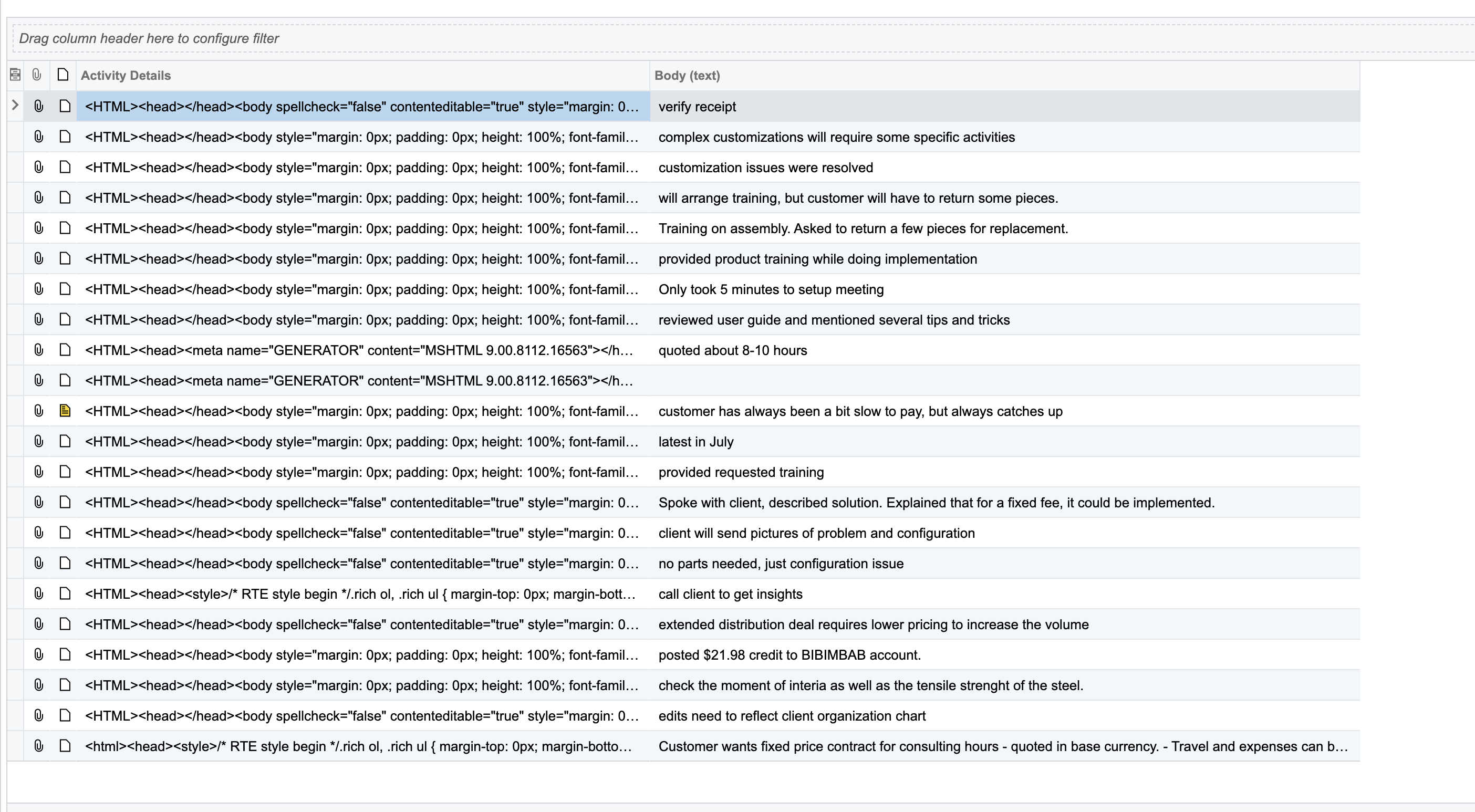 Here you go. The following inquiry shows the HTML Activity details and the resulting value converted to plain text:
