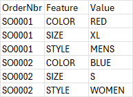 Column C - if the feature = size, list size, if not leave it blank