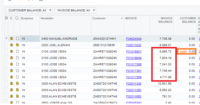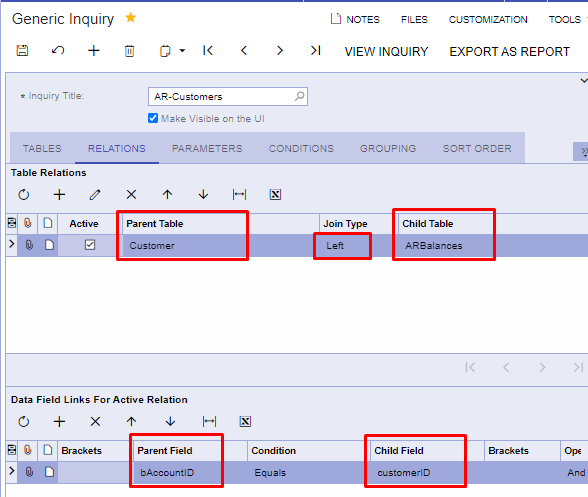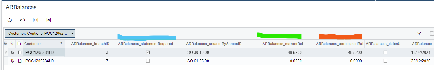 You will need to link your PX.Objects.AR.ARBalances table to the ARInvoice table with the CustomerID field as the linking field. Then the field you will use to view the balance is CurrentBal.