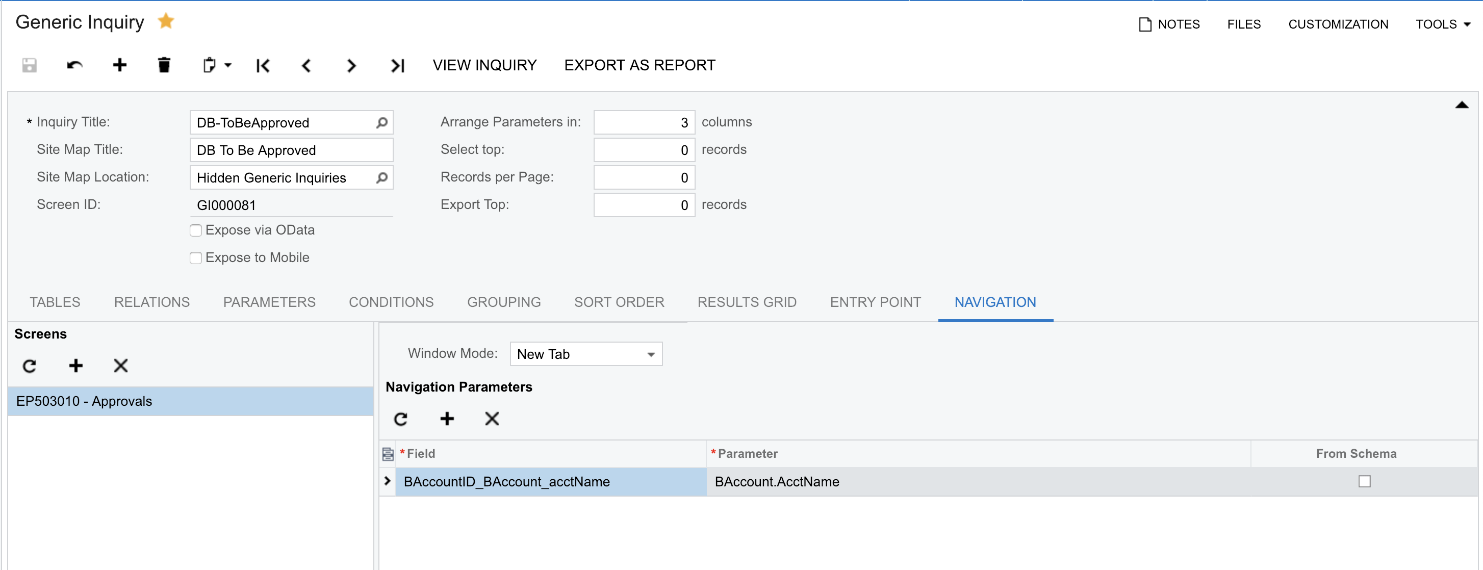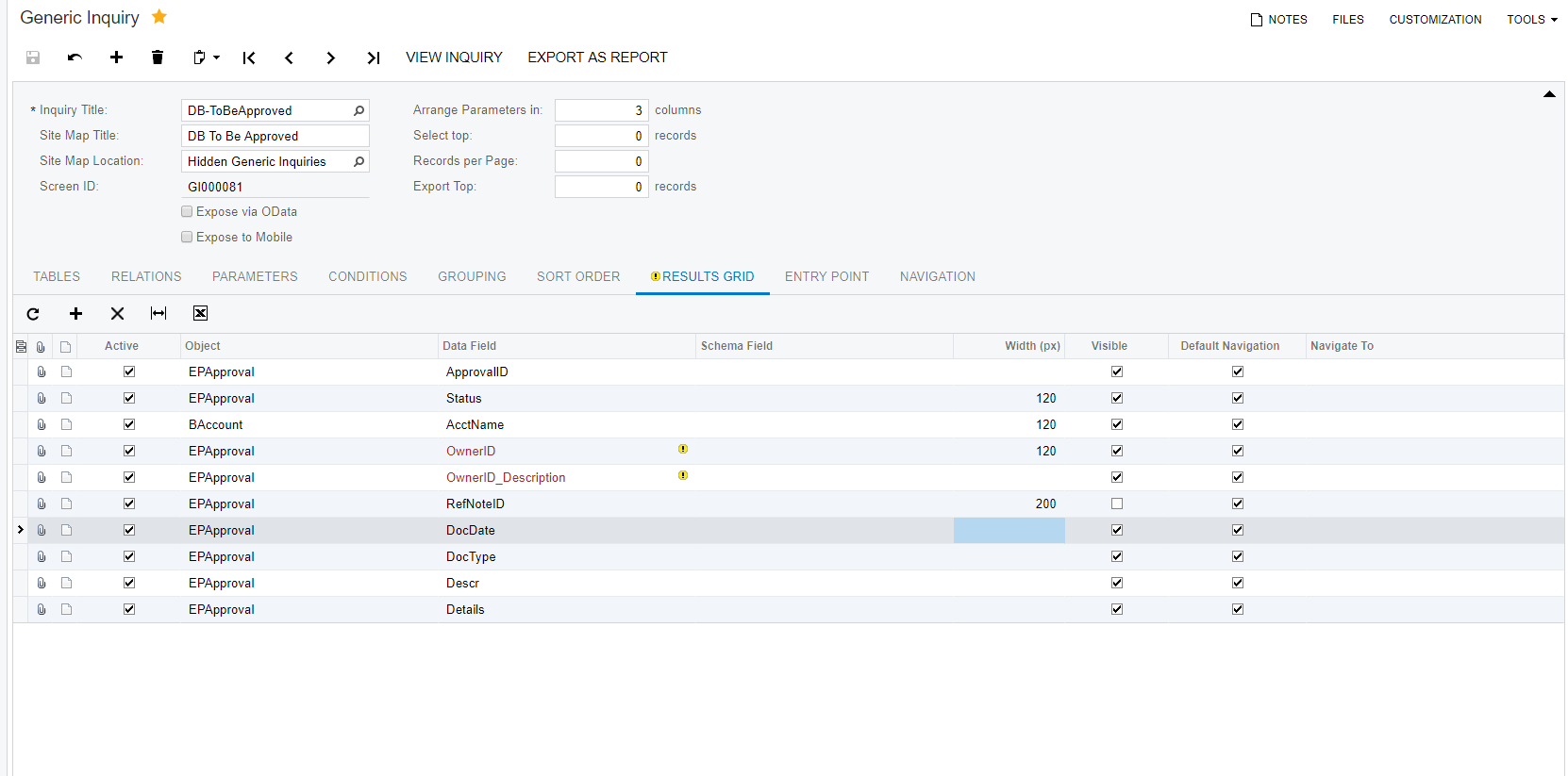 I am trying to create GI to allow me to generate a report showing a list of pending approval invoices based on a specific user.