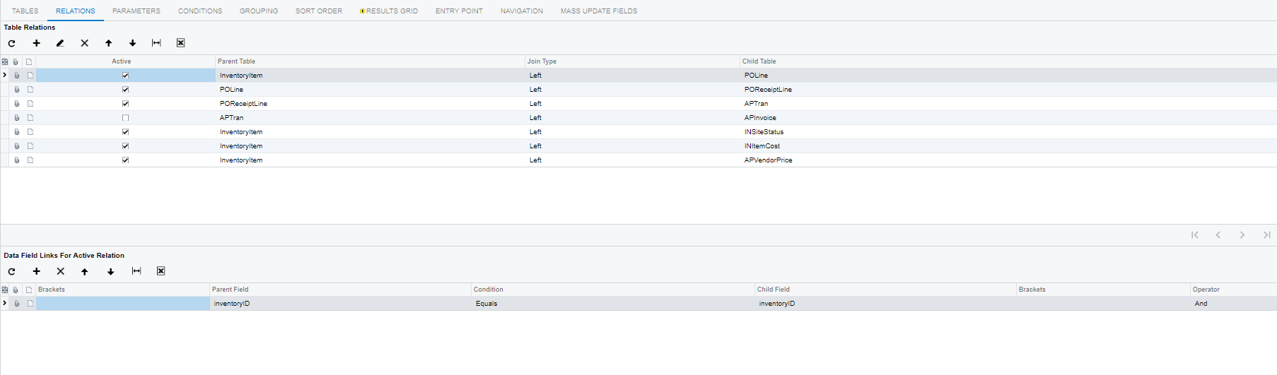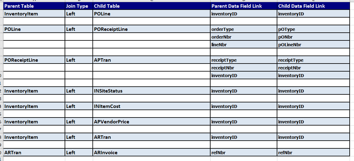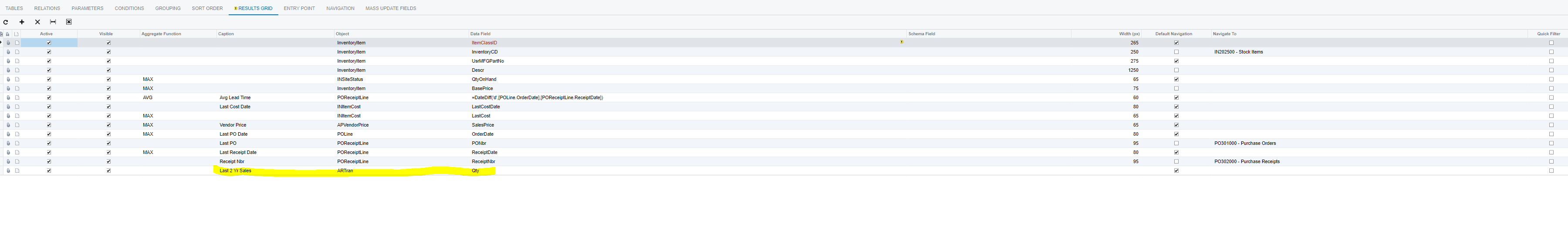 Please note that in the results grid below the column with Caption "Last 2 Yr Sales" is showing inflated QTY's. I am working on getting the qty's to display correctly so the table relations might change in regards to the ARTran / Inv ID / ARInvoice, etc.