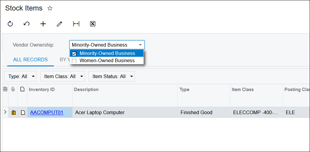 So if a user wants to find available stock for the above, they would just select from the parameters of the GI to narrow down the inventory list.