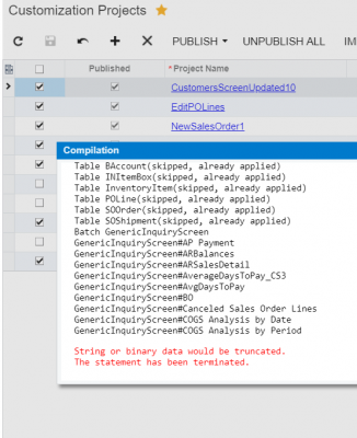 I have a customization project which has 94 GI's that are build on another system and I want to publish all the 94 of them in Acumatica.
