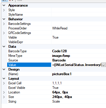 I'm stuck on this one - for some reason barcodes print fine in other reports, but they will not print in this one.