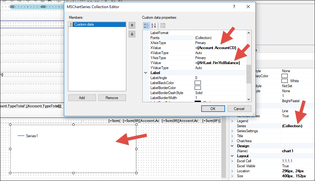 All I did was add a Series, populating the XValue and YValue fields: