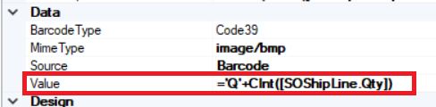 I have a requirement to include a quantity field as part of a barcode. The barcode must consist of a "Q" followed by a whole number (no decimal positions). For example, if the quantity field stored in Acumatica has a value of "4.00". The barcode must contain the data as "Q4". Any ideas on how to do this? Thanks.