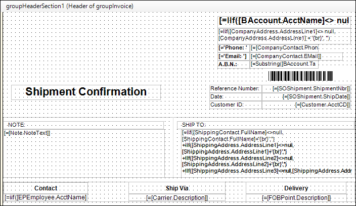 1. Looking at your RPX file, it looks like your document (pictured here) is called Shipment Confirmation. Is this an Invoice or a Shipment Confirmation?