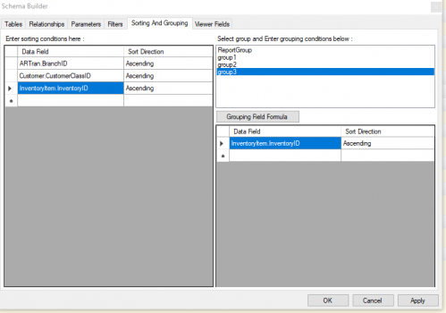 I want to add the QtyOut column to a report in report designer but I am getting error as "Invalid object name 'InventoryTranDetEnqResult'" in the Trace screen.