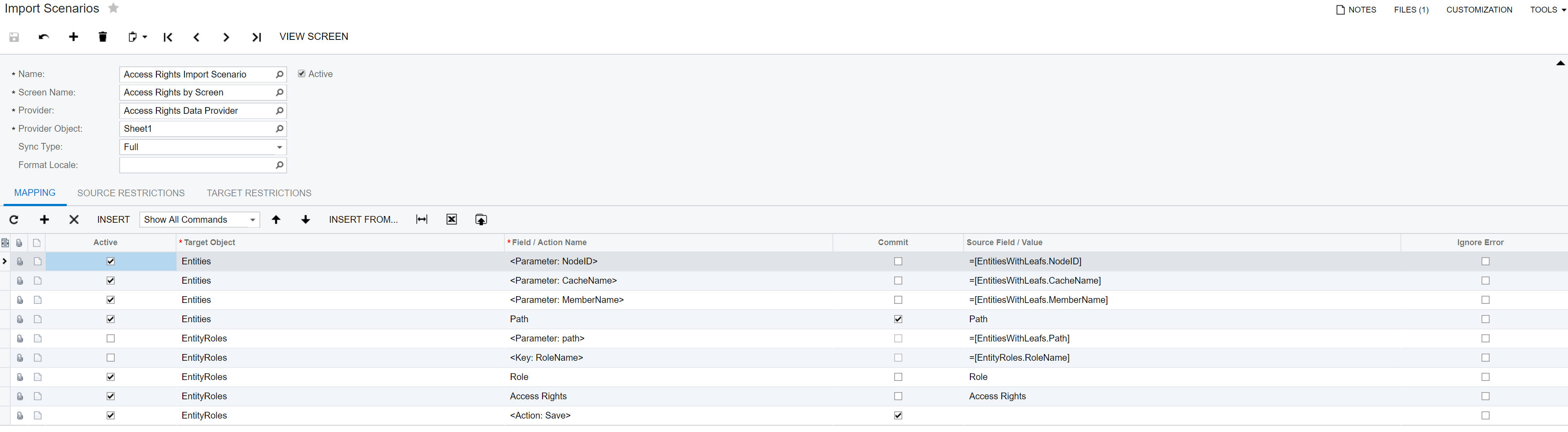Has anyone had success creating an Import Scenario for the Access Rights by Role screen?