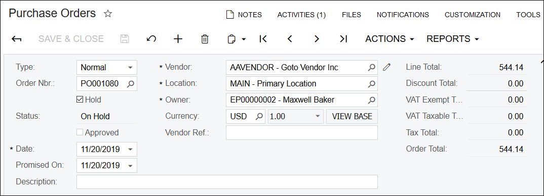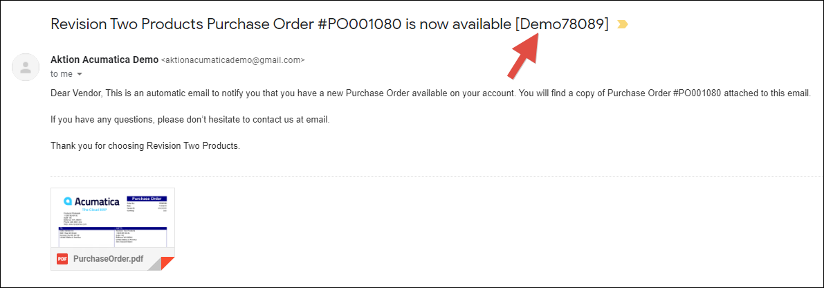 For those emails with special codes, Acumatica will attach them to the same record as the original email which in our case is a Purchase Order.