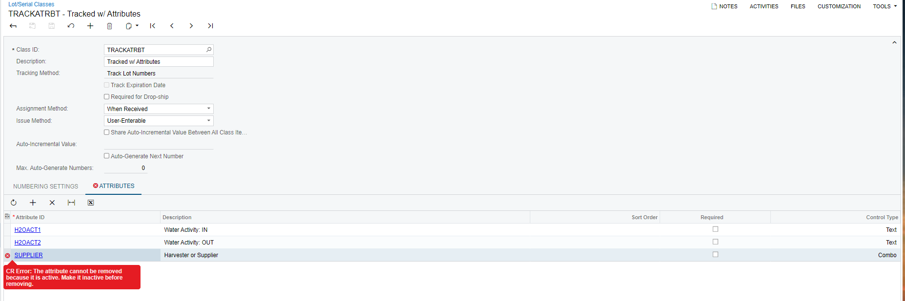 Can Acumatica track Attributes on Lot numbers and Serial numbers?