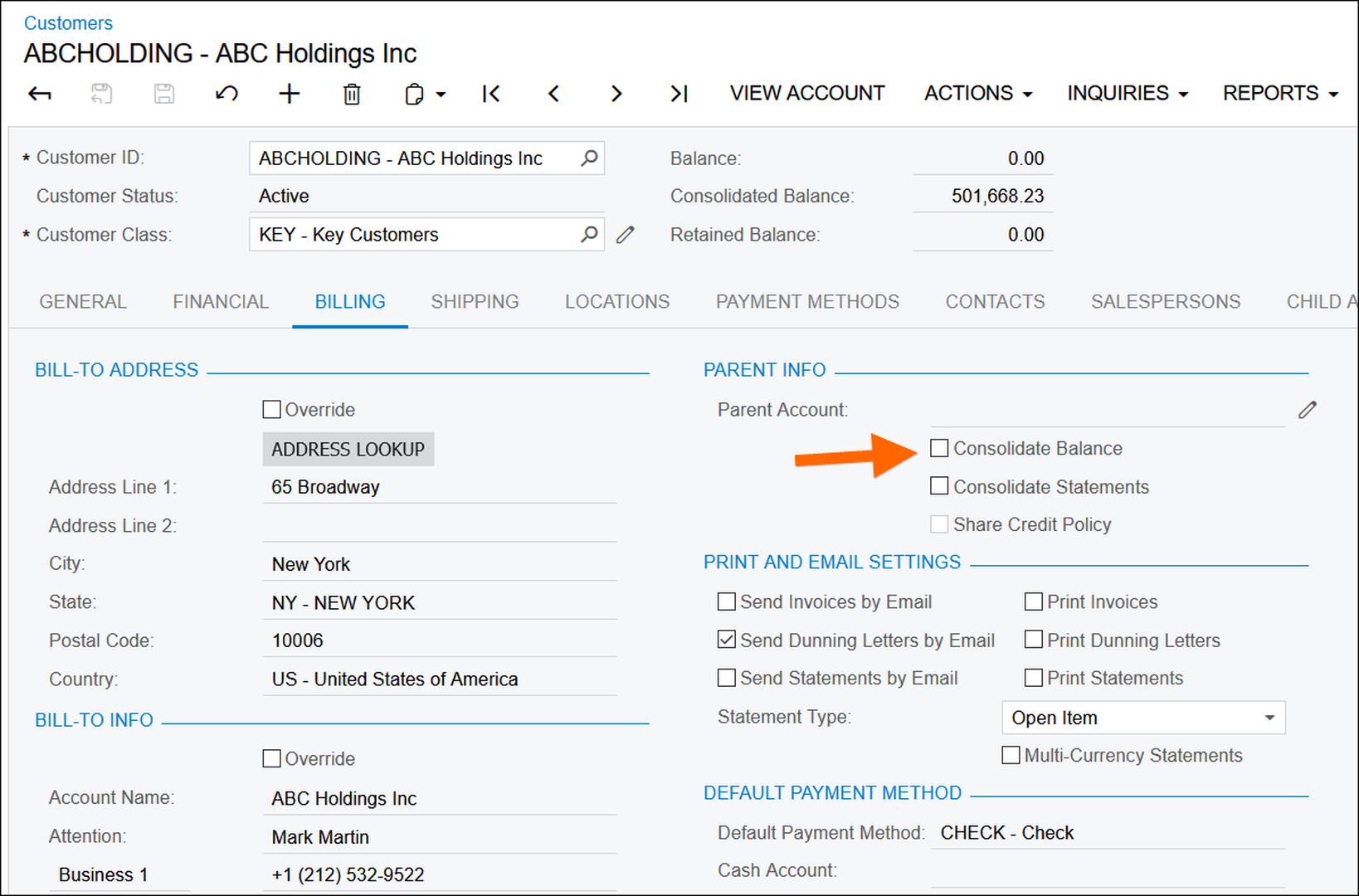 Hello! I'm very new to Acumatica, but I found this thread because I have essentially the same problem - I have a parent customer who has subsidiary customers, and we received a lump-sum payment from the parent customer that I need to split across multiple subsidiary customers. In the Accounts Receivables Preferences I have the "Consolidate Statements for All Branches" checked, but when I go into the unapplied payment, it's not letting me pull up any invoices for the subsidiary customers. I checked the subsidiary customer accounts and they are linked to the parent customer, also all the customers are set to the same default branch. Any ideas?