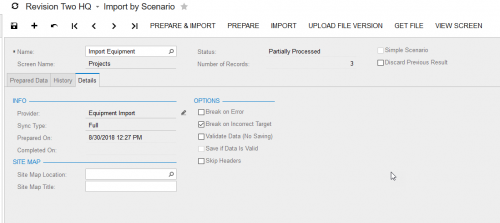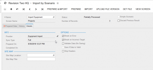 Sorry, missed this last update and saw it once Tim responded. I must have left the delete on there when I was switching things around. It was suppose to be on save and not delete. The break on error does not permit being flipped off even when saving (The import does not break and then flips the option back one, even when saved.). I kind of assumed it was a bug on this version as our vendor for the production server does not have an answer for that behavior either and sent it to their development team.