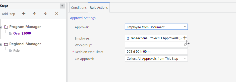 Now, the issue I have is with the approvers going on leave. The approving on behalf of somebody only seems to work via Workgroups. In the above case, I don't have a workgroup assigned to PO as it's not possible "to pick up" a workgroup from a document/employee. Workgroups would need to be hardcoded into the approval map, which in the case of 60 approvers would mean a lot of hard-codings and far from ideal.