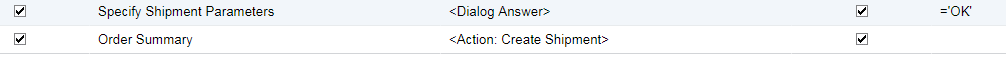 Below is an example of the import steps to include to create this. Note that you add the Dialog Answer before the action which I find somewhat counterintuitive but that's how it works. If you are updating the shipment date or warehouse you would add those import steps above the OK dialog answer step.