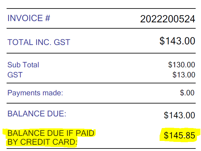 We currently process credit card payments using an EFTPOS machine, rather than using an integrated payments processing option. If we are to hand the processing fee onto the customer (e.g. 1.5% of the overall order), what is the best way to go about this? If a customer pays for an order before dispatch using a credit card, we can just add a non-stock item line “Credit Card Processing Fees” to the order. However, if the invoice has been sent, and the customer pays the invoice by credit card, we can’t go and add that non-stock line…