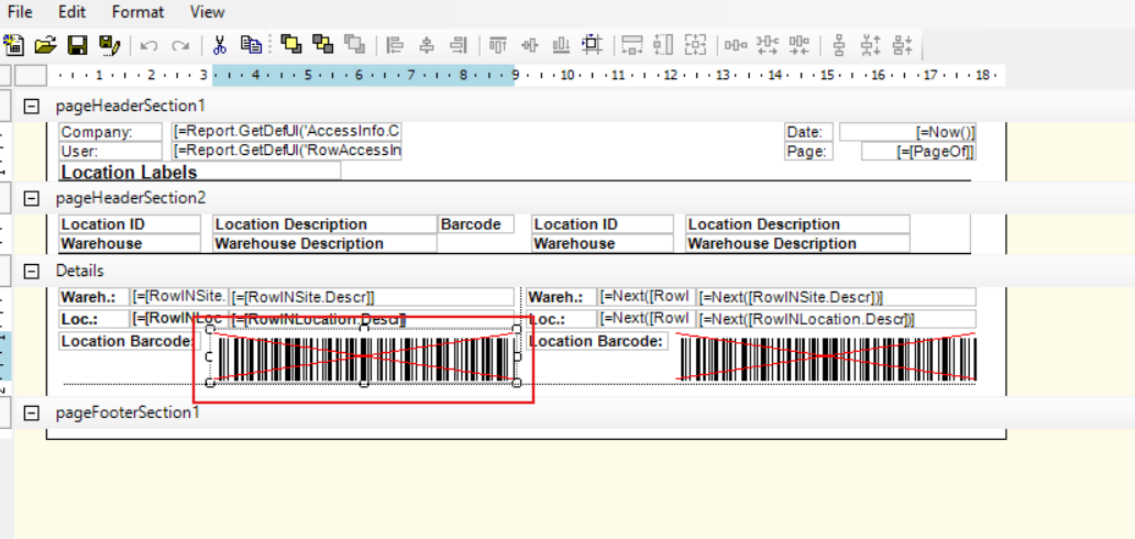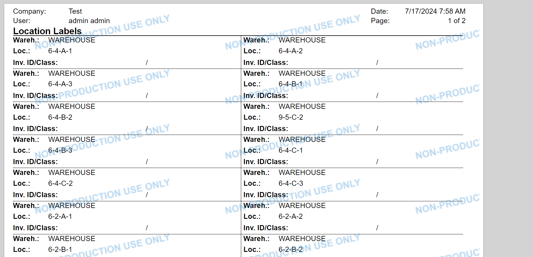 Ours is set based on the warehouse, it gives you the warehouse name, Location name (Bin Location) and then the barcode for the location.