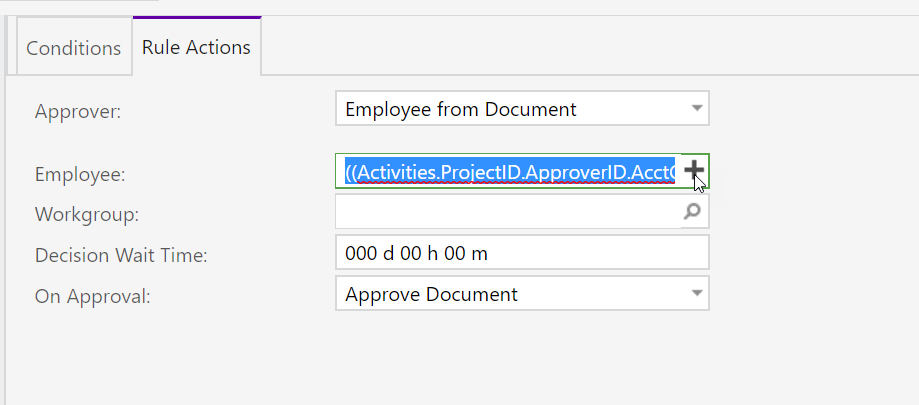 and this is the content on the employee field ((Activities.ProjectID.ApproverID.AcctCD))