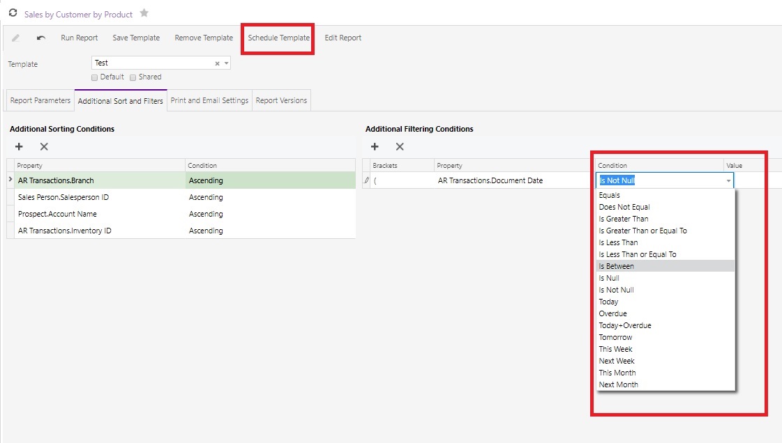 How to schedule a report for last week or last month. In report condition, there is no option available for "Last Week" or "Last Month".