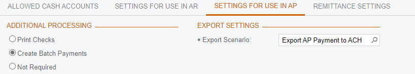 Check these two settings on the SETTINGS FOR USE IN AP tab of the Payment Methods (CA204000) screen: