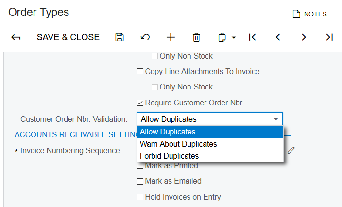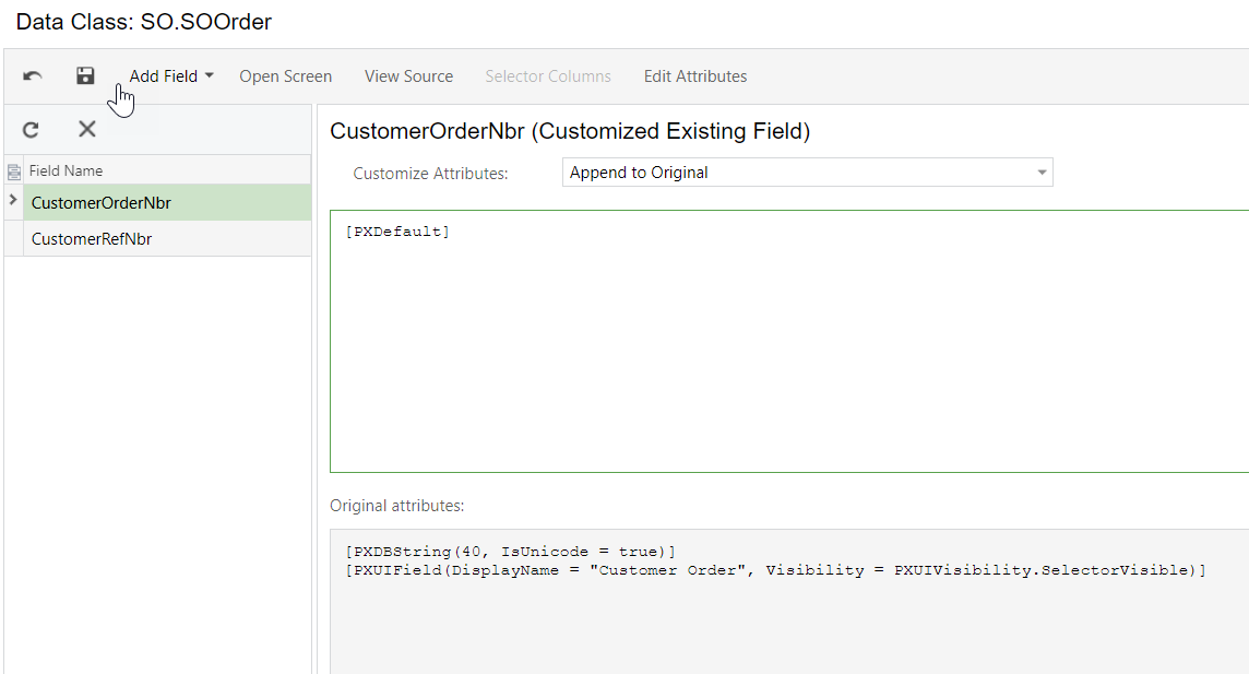 To make it compulsory for the customer order number field (Data Class SOOrder, Data Fieldย CustomerOrderNbr) before a Sales Order can be unheld and saved. It would also be great if this only occurred when the Order Type is SO.