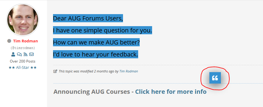 Dear AUG Forums Users,