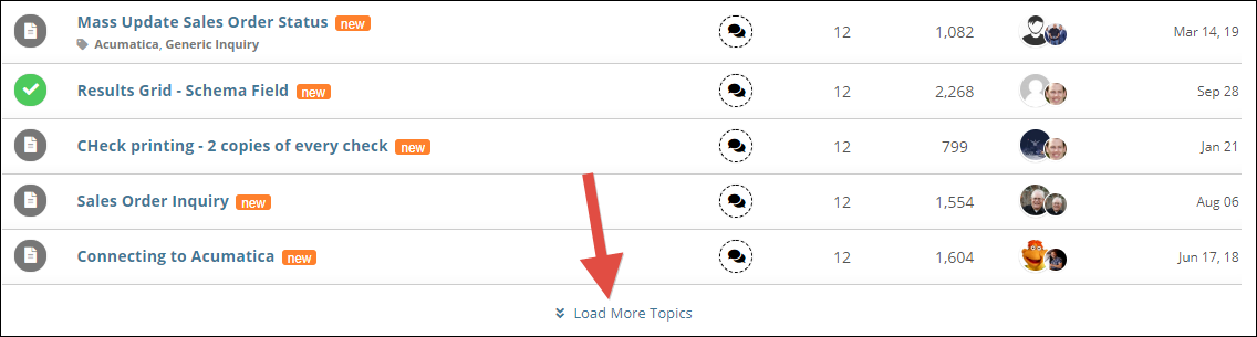 It's now easier to scroll through the content. 50 Discussion Topics are shown by default. Want to see the next 50? Just scroll to the bottom and click on Load More Topics: