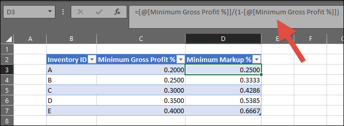 =[@[Minimum Gross Profit %]]/(1-[@[Minimum Gross Profit %]])