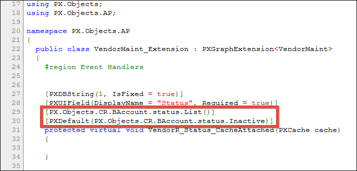 public class VendorMaint_Extension : PXGraphExtension<VendorMaint>