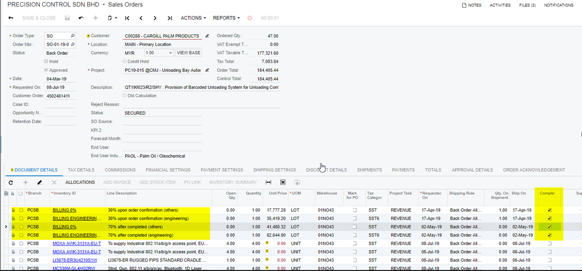 2) SO items completed automatically